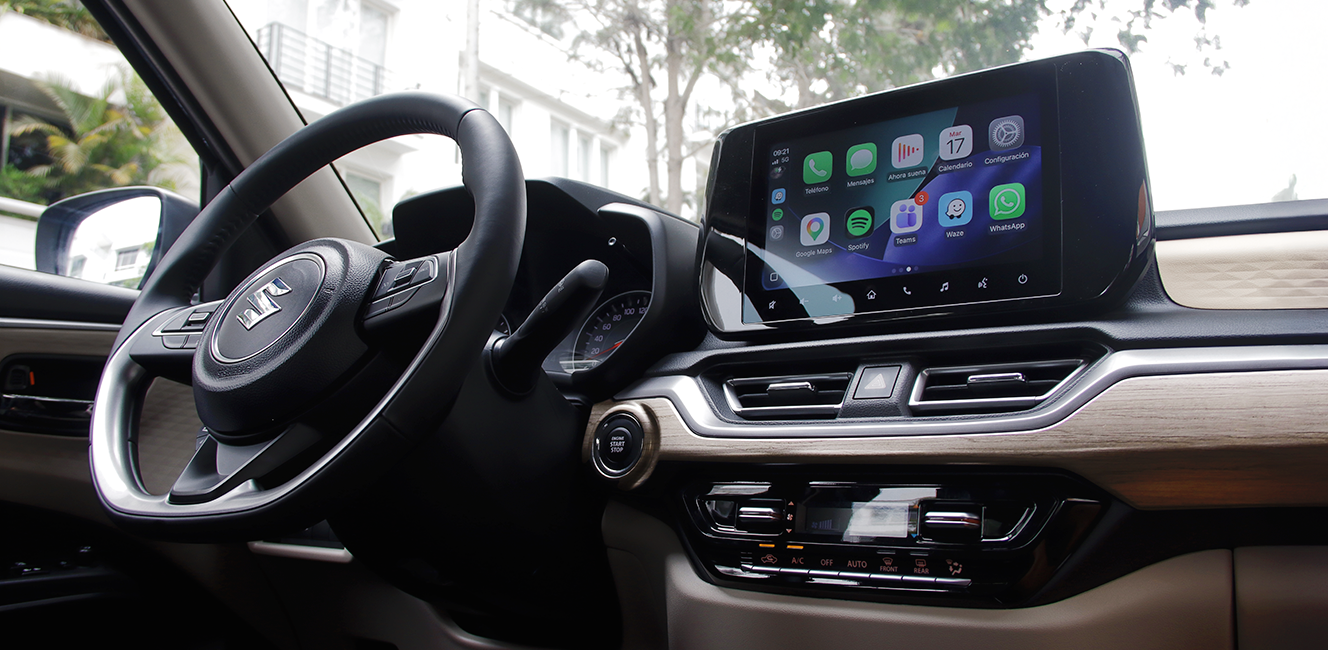 Disfruta de una combinación de texturas que elevan la experiencia de manejo en tu Suzuki Dzire, brindando mayor control y sofisticación en cada recorrido.