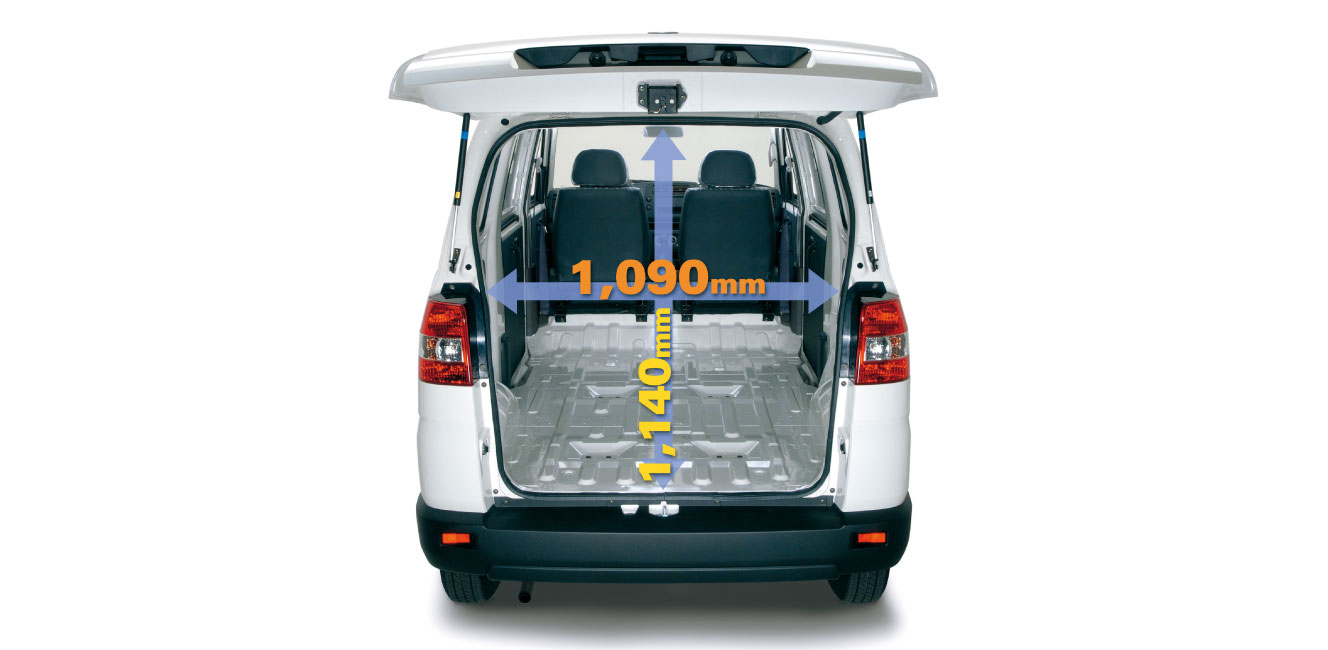 La puerta trasera de ancho completo se abre hacia arriba con facilidad, mientras que el piso plano maximiza la capacidad de carga. Capacidad de carga: 1 TON.