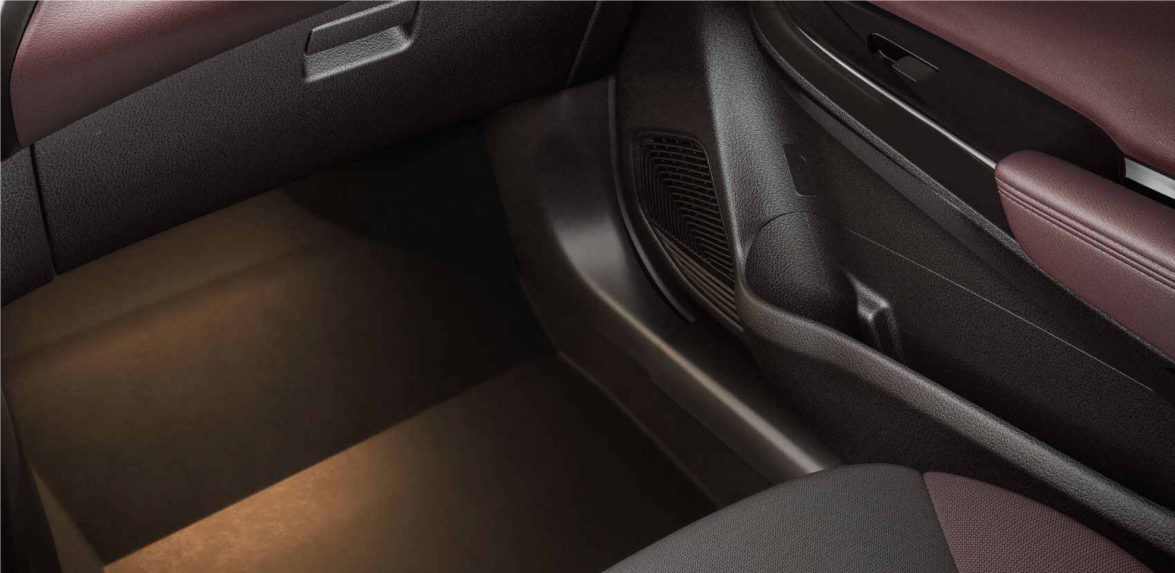 Las luces ambientales en la cabina se pueden ajustar en siete niveles a través de la pantalla multimedia. Las luces del espacio para los pies en los asientos delanteros agregan visibilidad para entrar y salir fácilmente, mientras que la luz de la guantera ayuda a colocar y sacar artículos.